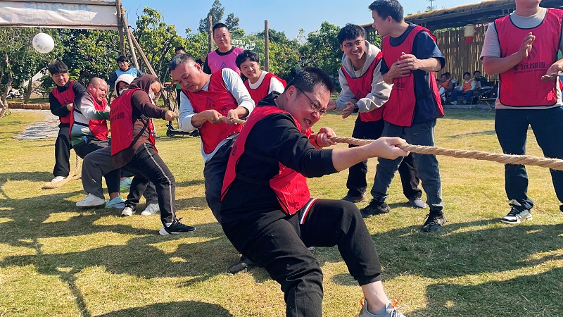 活动伊始,活力热身舞蹈打破拘谨,点燃现场氛围。团队风采展示环节各队伍喊出特色口号,尽显昂扬风貌。核心竞技环节好戏连台:“挑战NO.1”中,各队接力完成多项目协作,高效配合彰显团队韧性;“动力圈”里,成员手拉手同步摇动圆环,深刻体悟“团队力量远胜个人”的真谛;“飞鸽传书”考验默契沟通,拔河比赛则以合力拼搏将氛围推向高潮。