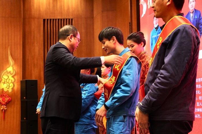 表彰先进,激励奋发。企业的每一份收获背后都凝聚着全体旷远人的努力与汗水。在2022年各方面工作中,涌现出一批表现突出的优秀员工,为企业发展做出了积极贡献。优秀员工表彰现场,由集团董事长王子林对2022年度优秀员工(周灿生、郑剑光、邱琳玉、黄振彬、郑葆珍)进行表彰,给予证书、绶带、奖金。随后,周灿生代表全体优秀员工进行发言,他说荣誉是鞭策进步的动力,我们将不断提升自我,与企业共呼吸、共命运。