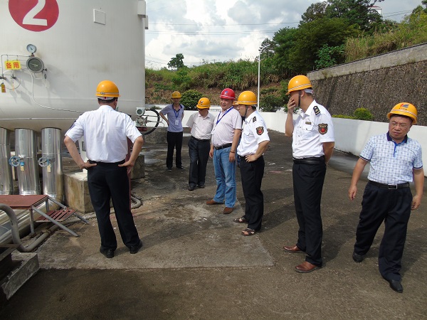 为确保2017年第十六个安全生产月期间燃气行业的生产安全,6月8日下午15点30分,上杭县安监局、住建局联合县交通局、经信局等职能部门,在福建上杭县中阳管道天然气有限公司总经理向荣、副总经理郭明亮的陪同下,对上杭中阳储配站安全运行管理情况开展全面安全大检查。