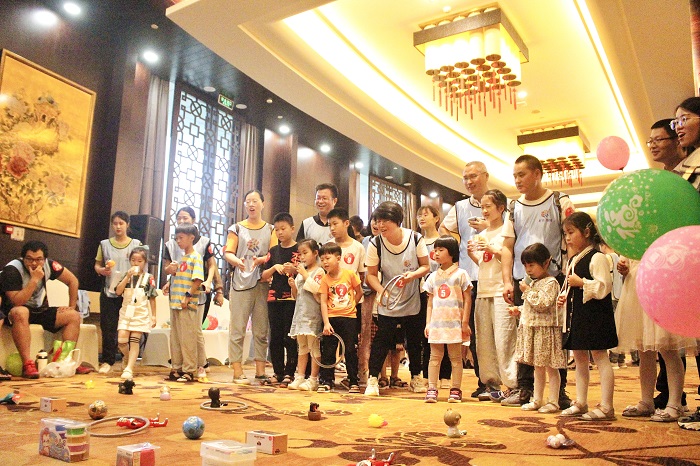 在游戏中小朋友们尽情玩耍、尽情欢笑,家长们贴心陪伴,与他们一同制造快乐、分享快乐,活动现场洋溢着温馨与幸福。